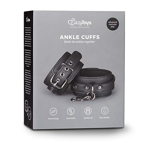 Deze prachtige enkelboeien zorgen ervoor dat je onderdaan niet uit je controle kan ontsnappen! De boeien zijn verstelbaar van 13 tot 3 cm en passen daarom altijd perfect. De boeien zijn aan elkaar vastgemaakt met een metalen ketting, maar de clipsluitingen geven je ook de mogelijkheid om ze uit elkaar te halen en ze in combinatie met andere speeltjes te gebruiken. Denk bijvoorbeeld aan handboeien, hogties, kettingen en bondageharnassen. De boeien zijn gemaakt van kunstleer met een voering van schuim en voelen fluweelachtig zacht aan, waardoor ze comfortabel zijn om te dragen.