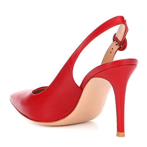 High Heels Damen Spitzschuh High Heel Sandalen Slingback Party Schuhe Abendschuhe-Red||41