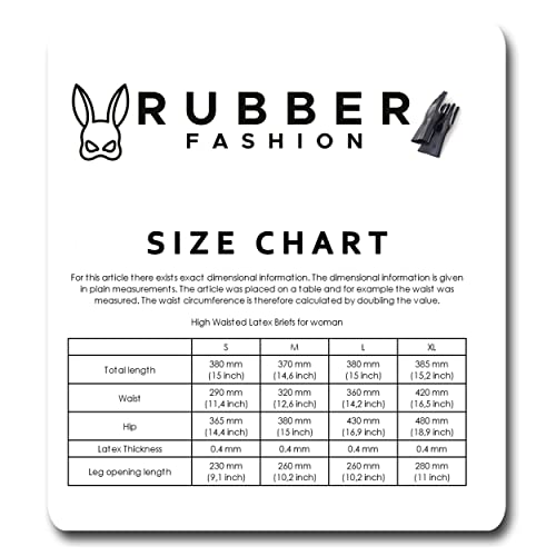 LET OP: De rubberen broek is niet gechloreerd, licht gepoederd en verschijnt daarom mat. Om de glans te behouden met latex siliconenolie. Let op de maattabel op de afbeeldingen
